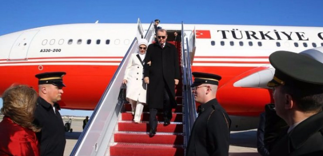 Özel uçak TUR ile Washington'a inen Erdoğan'ı, Andrews Hava Üssü'nde Dışişleri Bakanı Mevlüt Çavuşoğlu, Türkiye'nin Washington Büyükelçisi Serdar Kılıç karşıladı. CUMHURİYET VE SÖZCÜ'DEN YALAN HABER |